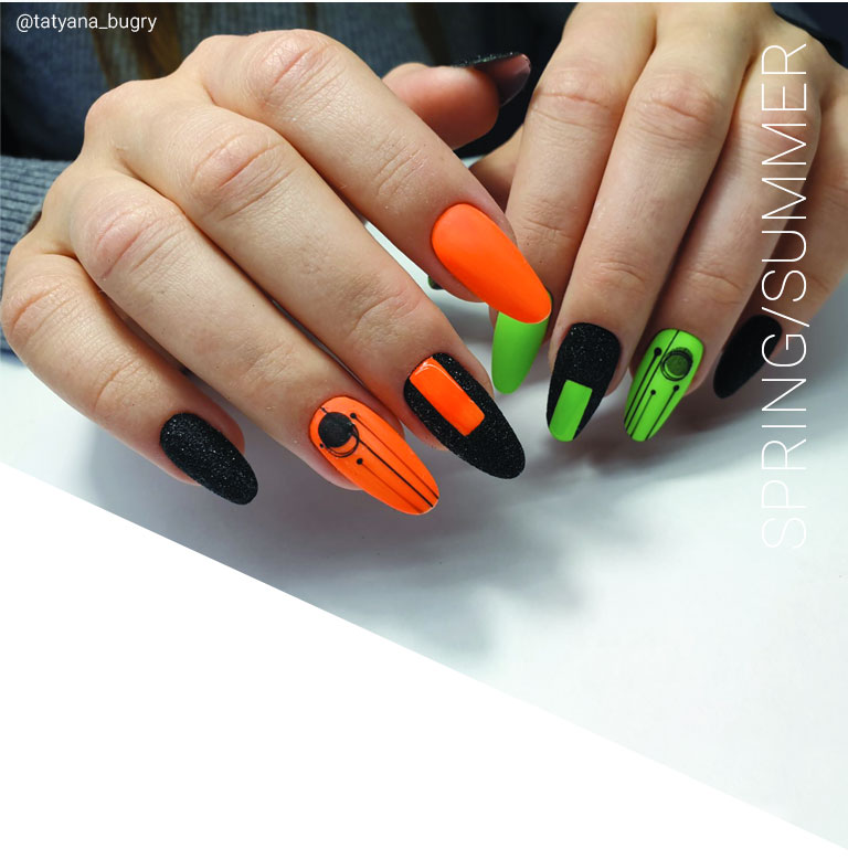 которые напоминают красочную радугу, от неоново- желтого до ультрамаринового синего.