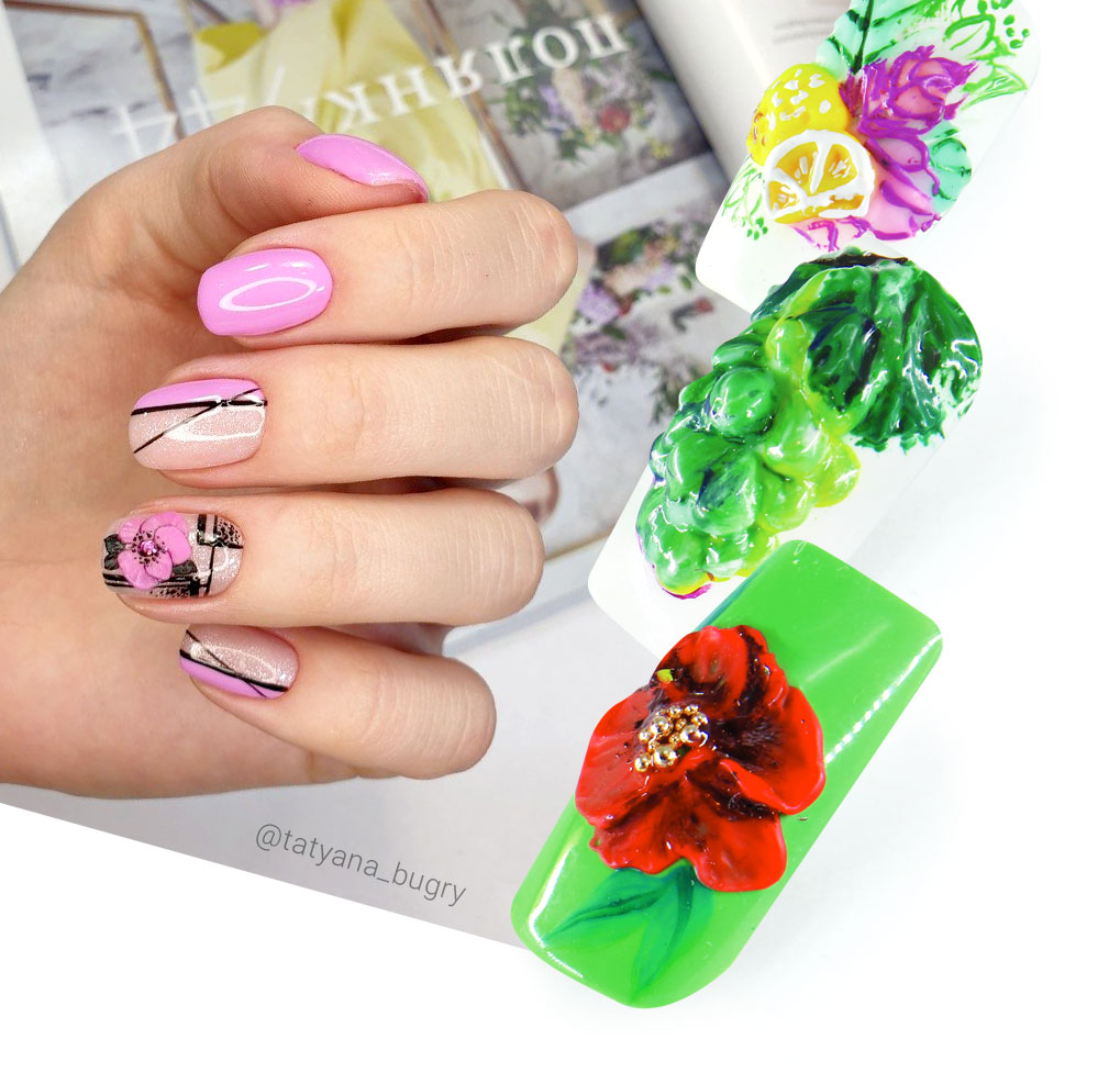 На данный момент развитие маникюрных техник направлено в сторону упрощения работы с любым материалом. Именно 5D-гели от “Global Fashion” – тот тип материала, с которым максимально просто и понятно работать даже мастерам “самоучкам”. Техника работы с этой плотной и превосходно держащей форму массой нарабатывается быстро. А готовые фигуры поражают стильным и эффектным исполнением.