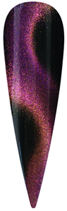 В современных версиях гель-лака “Кошачий глаз” 24D от “Global Fashion” наблюдается сочетание нескольких цветных оттенков, которые при обработке магнитом дают эффект хамелеона. За счёт этого эффекта дизайн напоминает звёздное небо в ночи, на котором наблюдается мистический, непредсказуемый и красивый феномен – северное сияние, внезапно появляющийся и точно также внезапно исчезающий. Такое покрытие смотрится очень красиво, благодаря переходу оттенков и изменению цвета под разным углом света.