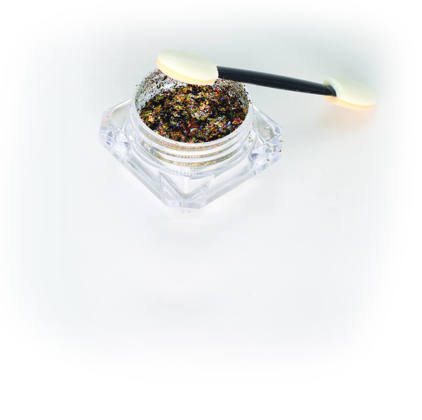 Мелкодисперсная фольга, переливающаяся разными цветами.